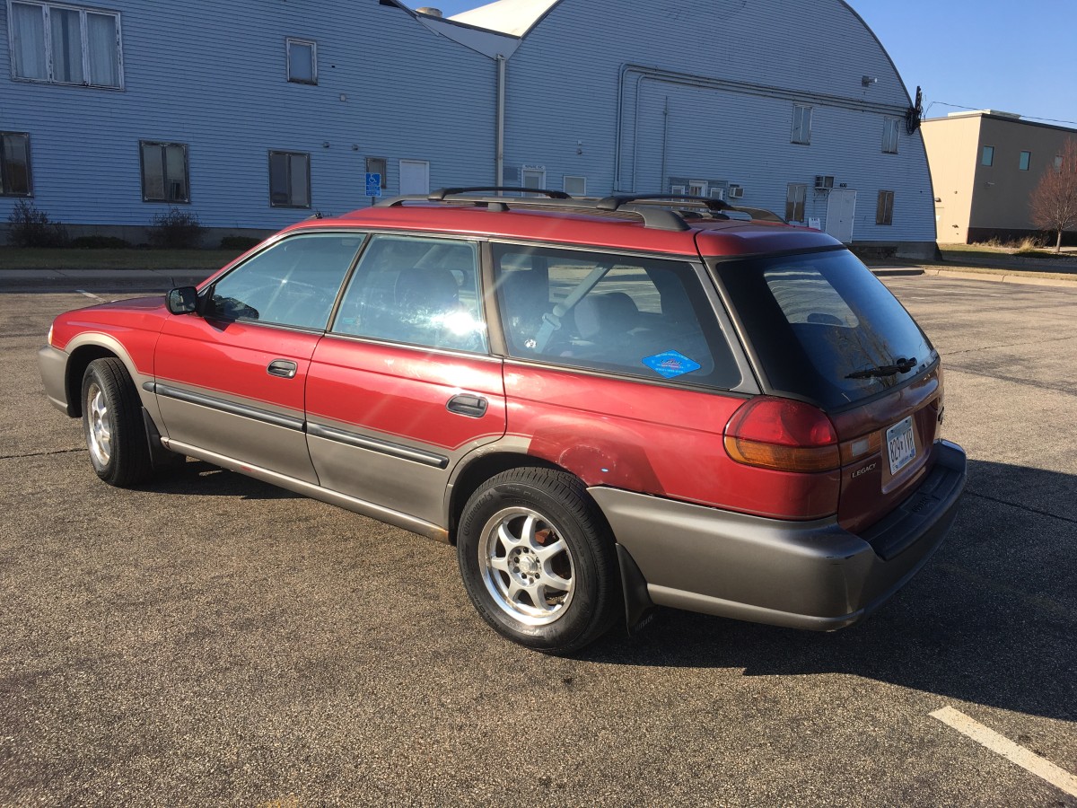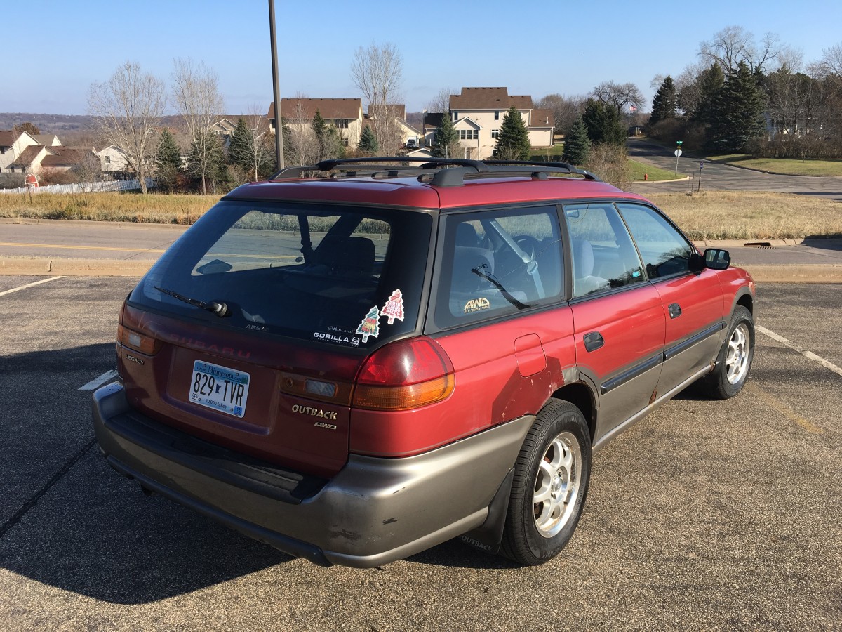 We're selling our 1998 Subaru Outback because we've bought a new one and this one needs a new home. We've owned her for